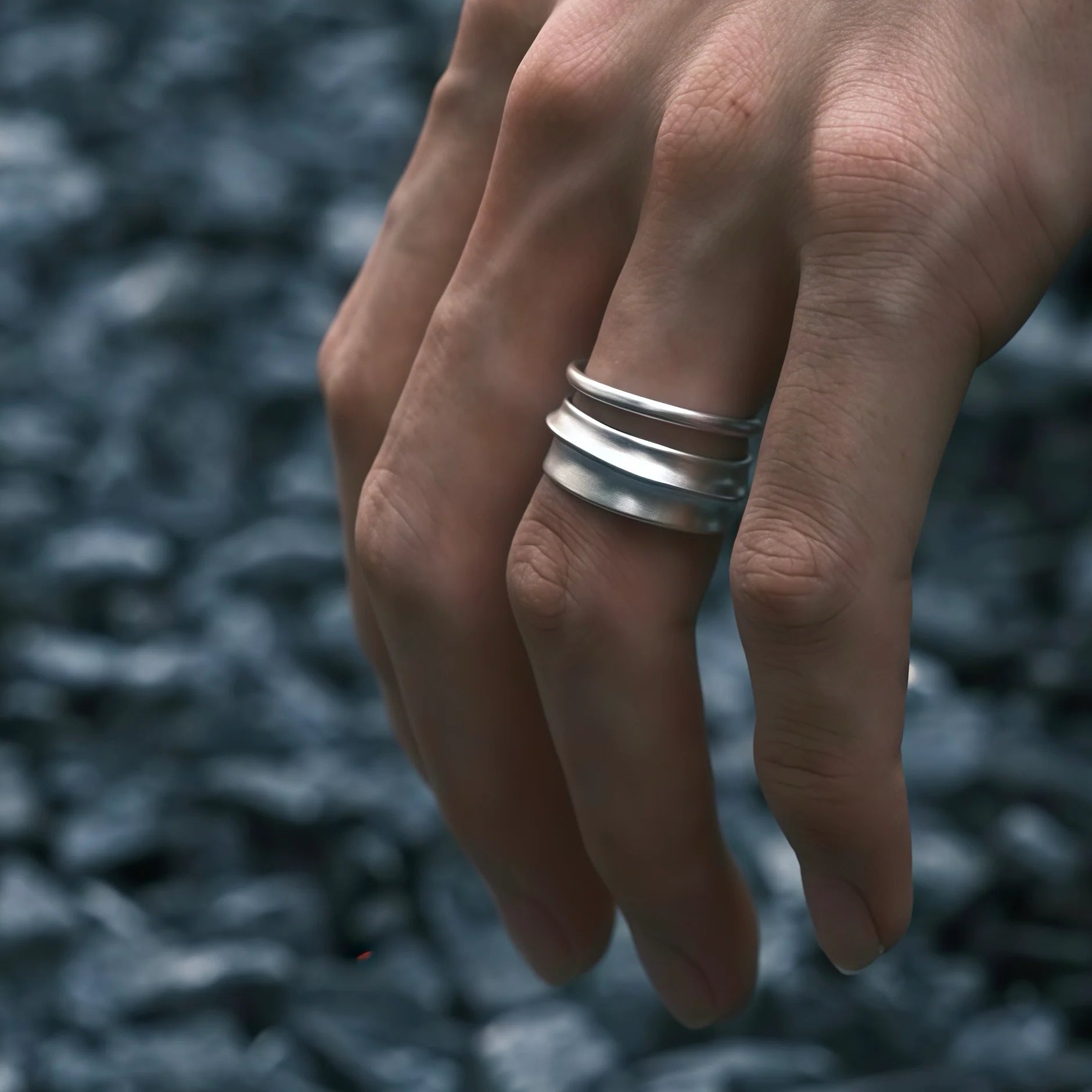 Minimalistisk, men alligevel meningsfuld, indhyller Triple Band-ringen din finger i lag af poleret sølv. Hver ring minder om de andre og skaber en stille rytme, der bevæger sig med dig – subtil nok til hverdagsbrug, dristig nok til at udstråle underspillet selvtillid.