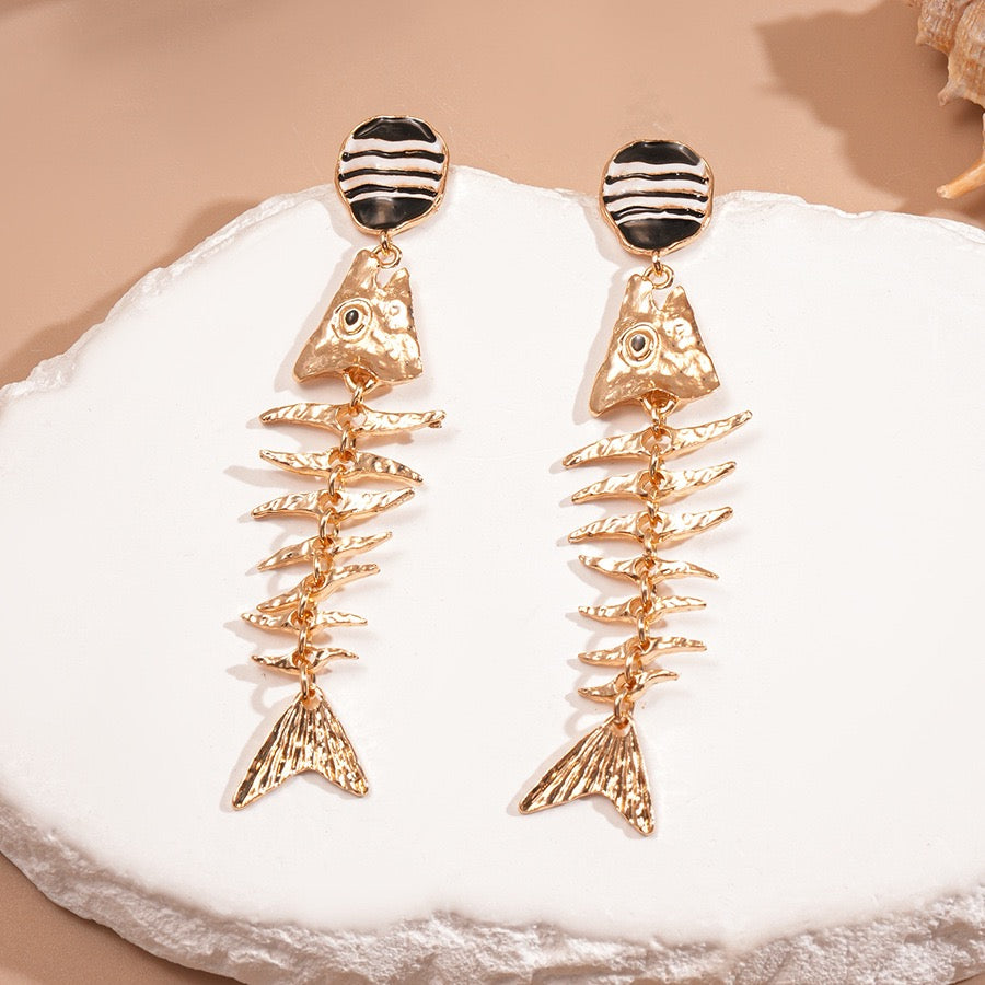Dieser verspielte Ohrhänger mit Fischgrätenanhänger (ein beliebter Stil in der europäischen und amerikanischen Modeschmuckszene) ist aus vergoldeter Legierung gefertigt und besticht durch ein schwarz-weiß gestreiftes Emaille-Oberteil sowie einen strukturierten Fischgrätenanhänger. Das Design vereint verspielte Elemente mit einem Hauch von Retro-Charme: Das gestreifte Oberteil erzeugt eine gewisse Hierarchie, während der dreidimensionale Fischgrätenanhänger mit seiner rauen Metallstruktur sanft mitschwingt und so die Lebendigkeit des Looks unterstreicht. Er eignet sich perfekt für Urlaubsreisen, Streetstyle-Looks, Partys und andere Anlässe und ist ein Must-have für alle, die ihre Persönlichkeit zum Ausdruck bringen möchten.