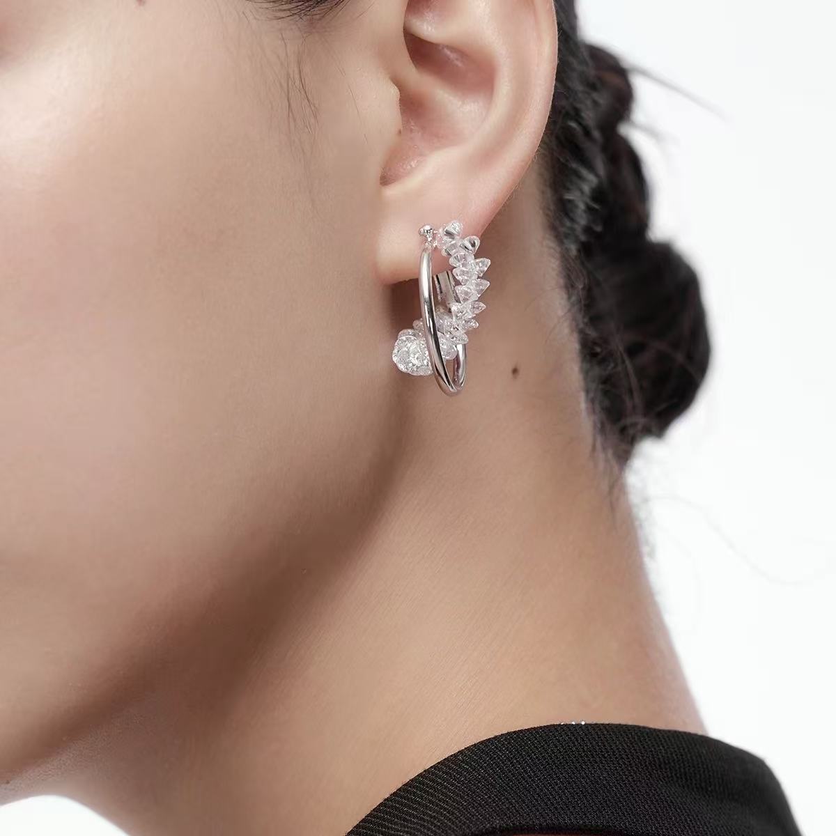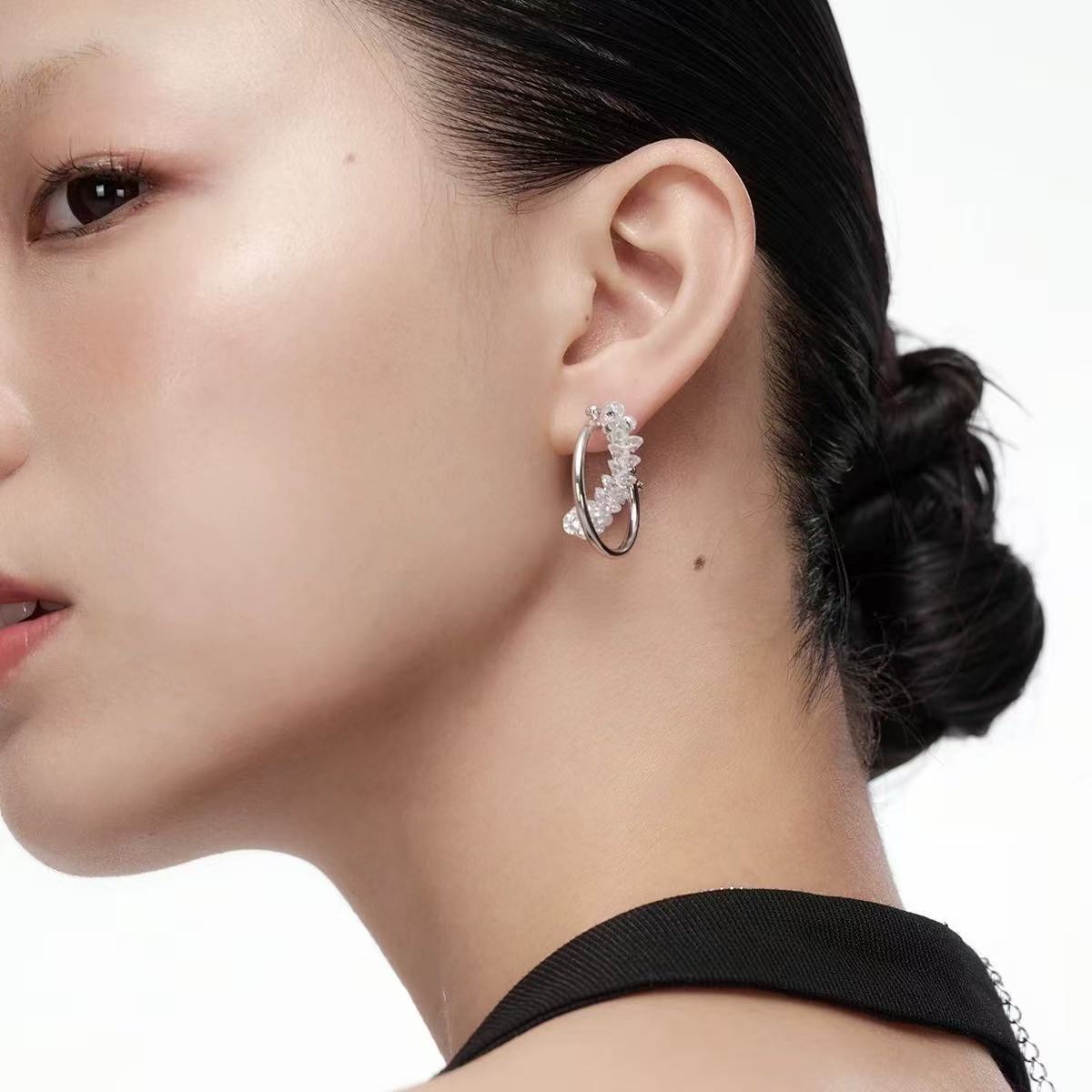 Named for the icy, fragmented sparkle of crystal shards that cling to the silver hoop, these earrings capture the quiet magic of frost-kissed winter mornings. Each glint is a frozen star, turning your every movement into a dance of cold, ethereal light.