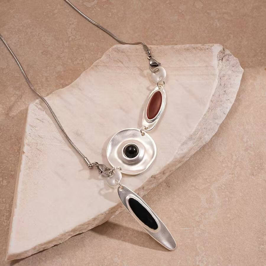 Halsband aus mattsilbernem Leder mit tropfenförmigem Anhänger