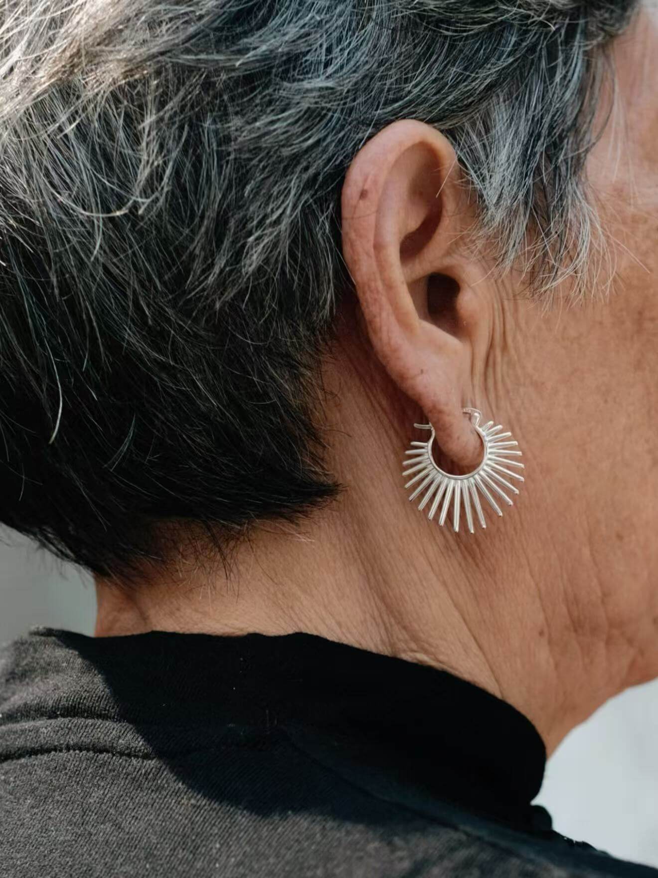 Diese geometrischen Ohrringe fangen die Sonnenstrahlen in klaren Linien ein und verströmen sanfte Wärme und positive Energie. Sie wurden entworfen, um Ihren Tag zu erhellen und sind mehr als nur Schmuck – sie sind eine tragbare Erinnerung an Ihr inneres Licht und Ihre Kraft. Lassen Sie die Sonne in sich aufleben.