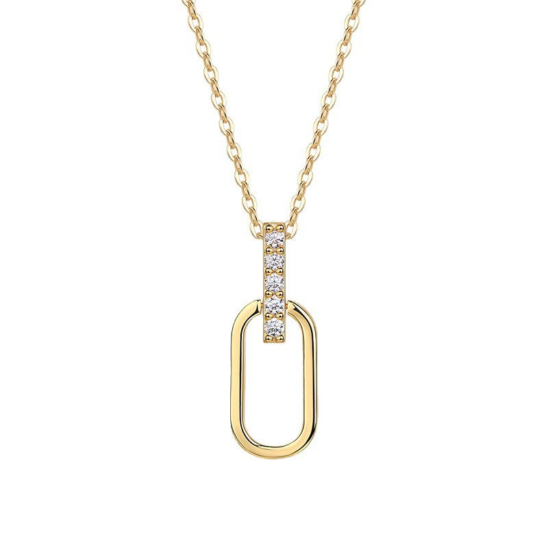 Designmerkmale: Verstellbare Feinkette (40 cm + 5 cm) + U-förmiger Anhänger (im Stil einer Büroklammer) + teilweise Moissanit-Einlage