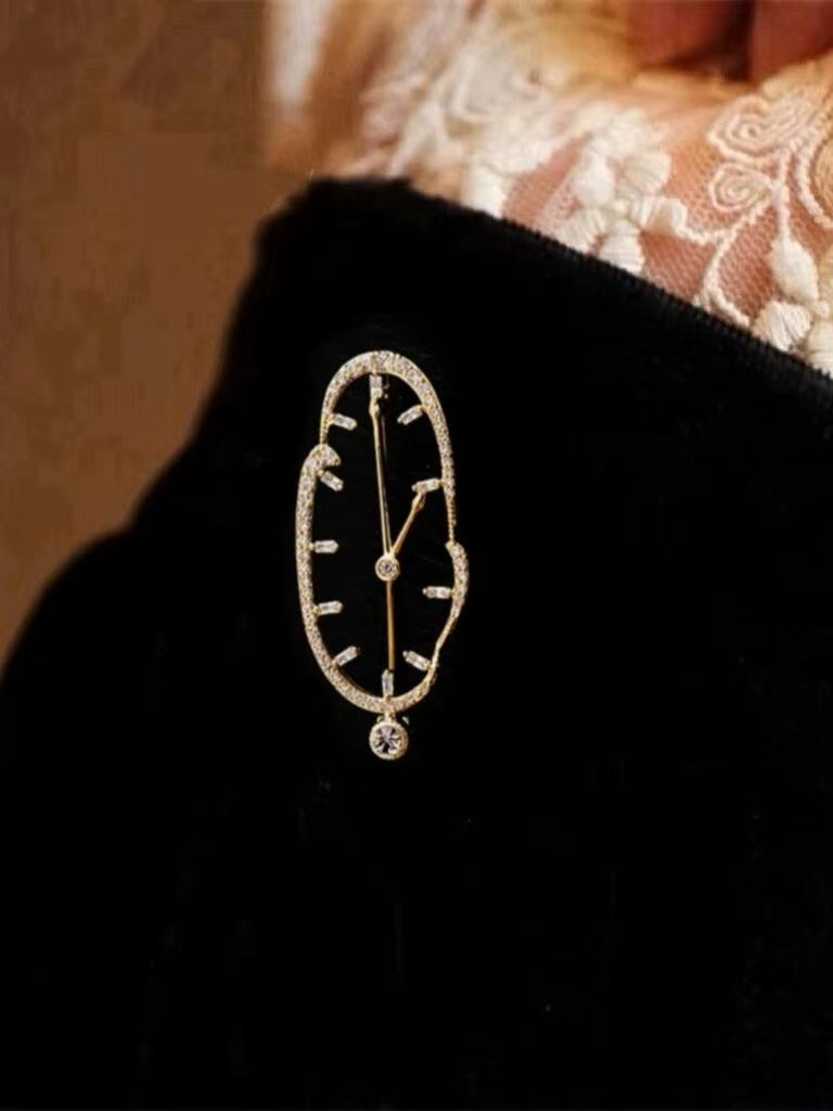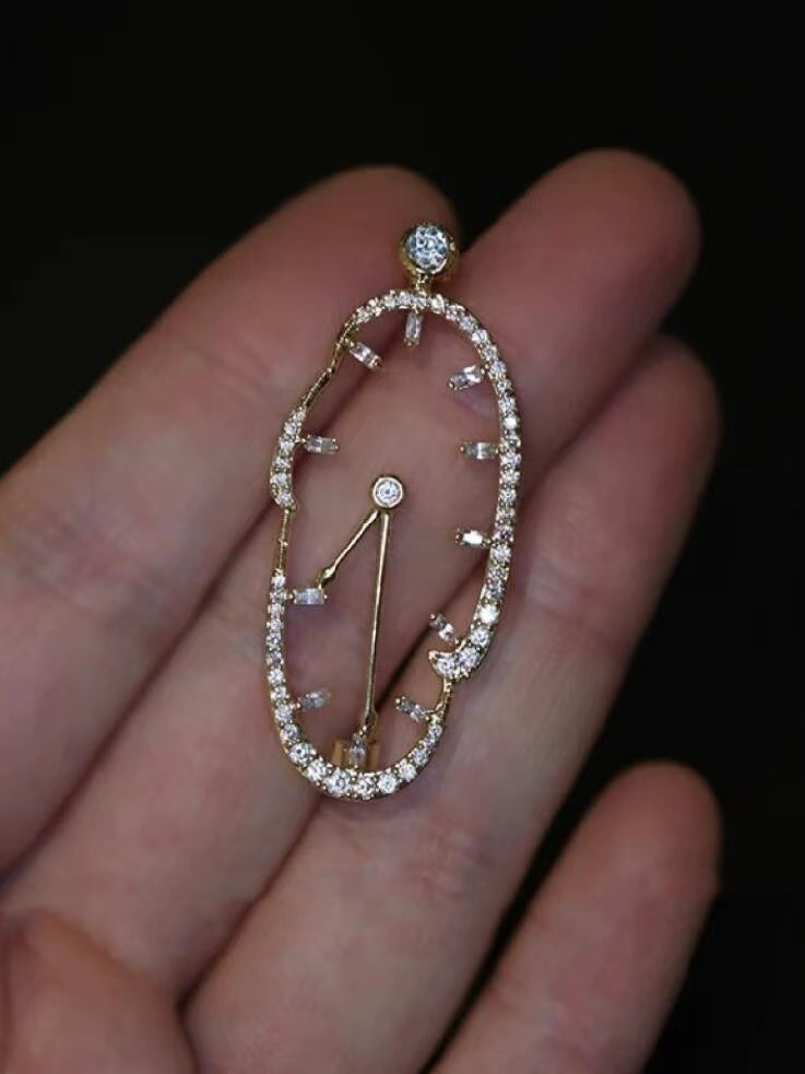 Shop our melting clock pendant inspired by surrealist art. Adorned with sparkling crystals in a gold finish, this unique timepiece necklace is a statement of style.